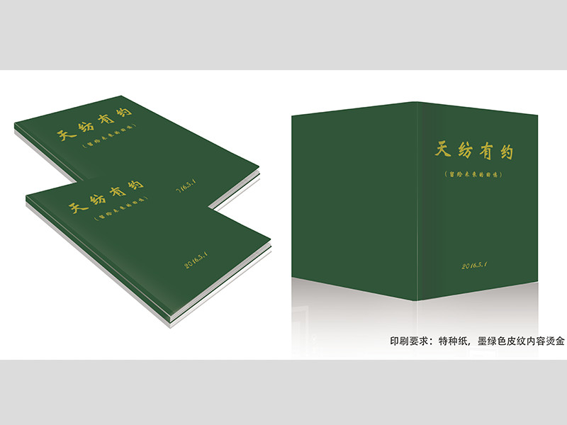 材料:封面为高档环保特种纸彩色印刷,内页为157克高档环保铜版纸彩色印刷,特种纸为墨绿皮纹纸,文字烫金